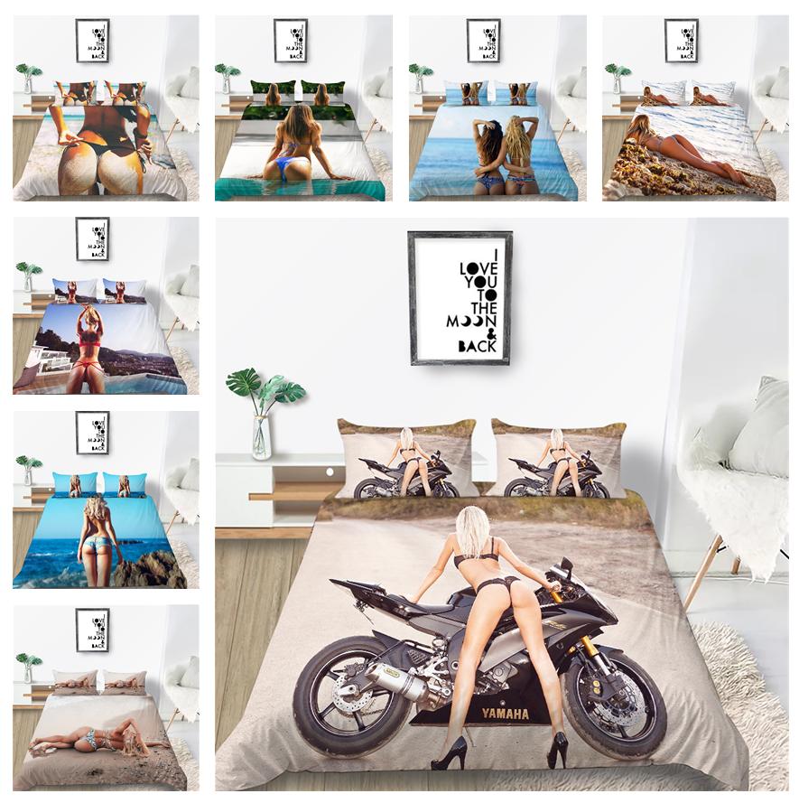 Комплект постельного белья для бикини, одеяло и наволочка 2 или 3 предмета сексуального принта красоты полноразмерное моющееся удобное постельное белье