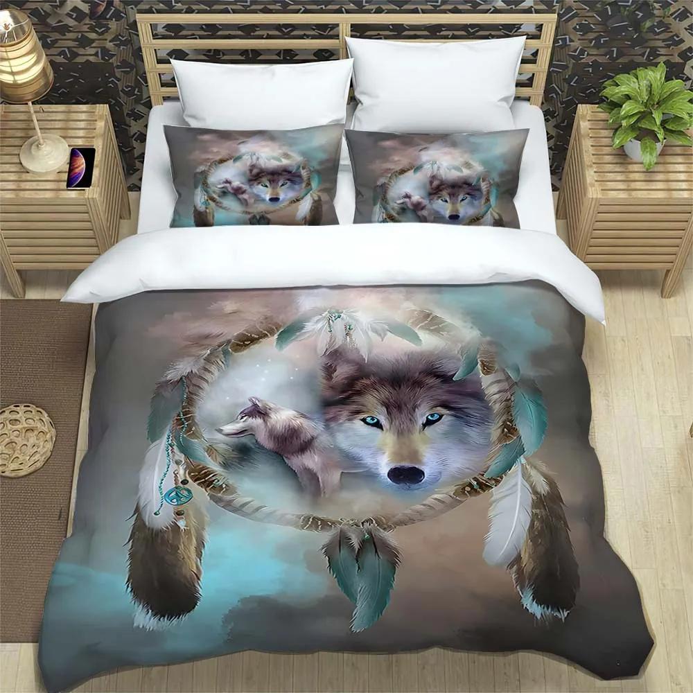 Комплект постельного белья из полиэстера с принтом лесного животного волка, мягкий и удобный. Полный размер. Настраиваемые комплекты постельного белья с одеялом. EU single(135x200cm)