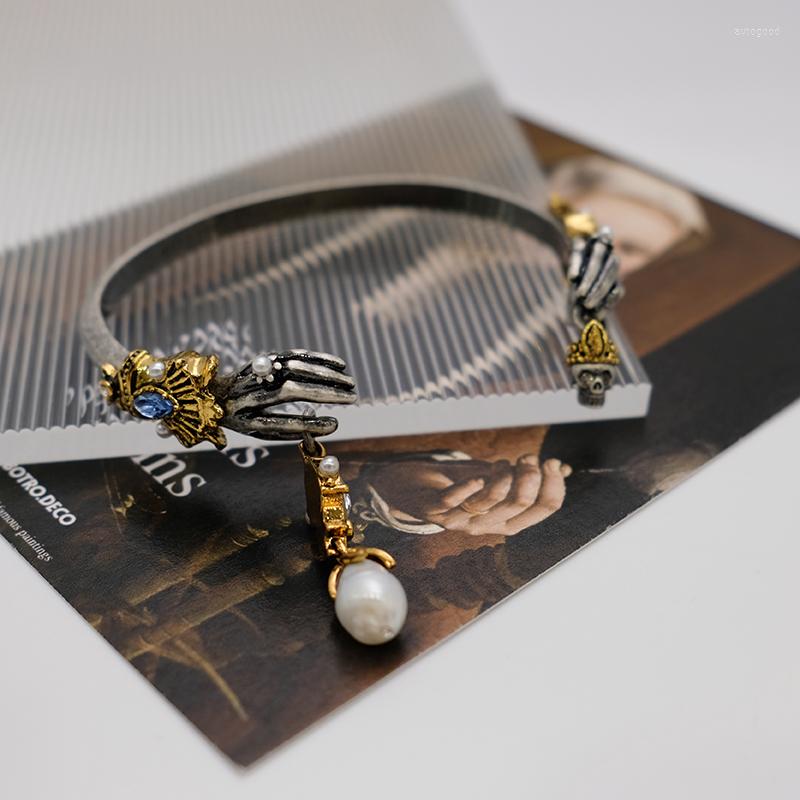 Bangle Punk Retro Distressed High Texture Palm Natural Pearl Open Two-color Bracelet
