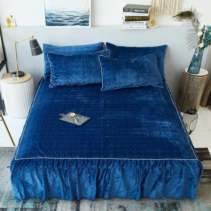 Комплект постельного белья из синего флиса, теплое покрывало, одеяло, покрывало для кровати, комплект с юбкой, наволочкой, большого размера, ...