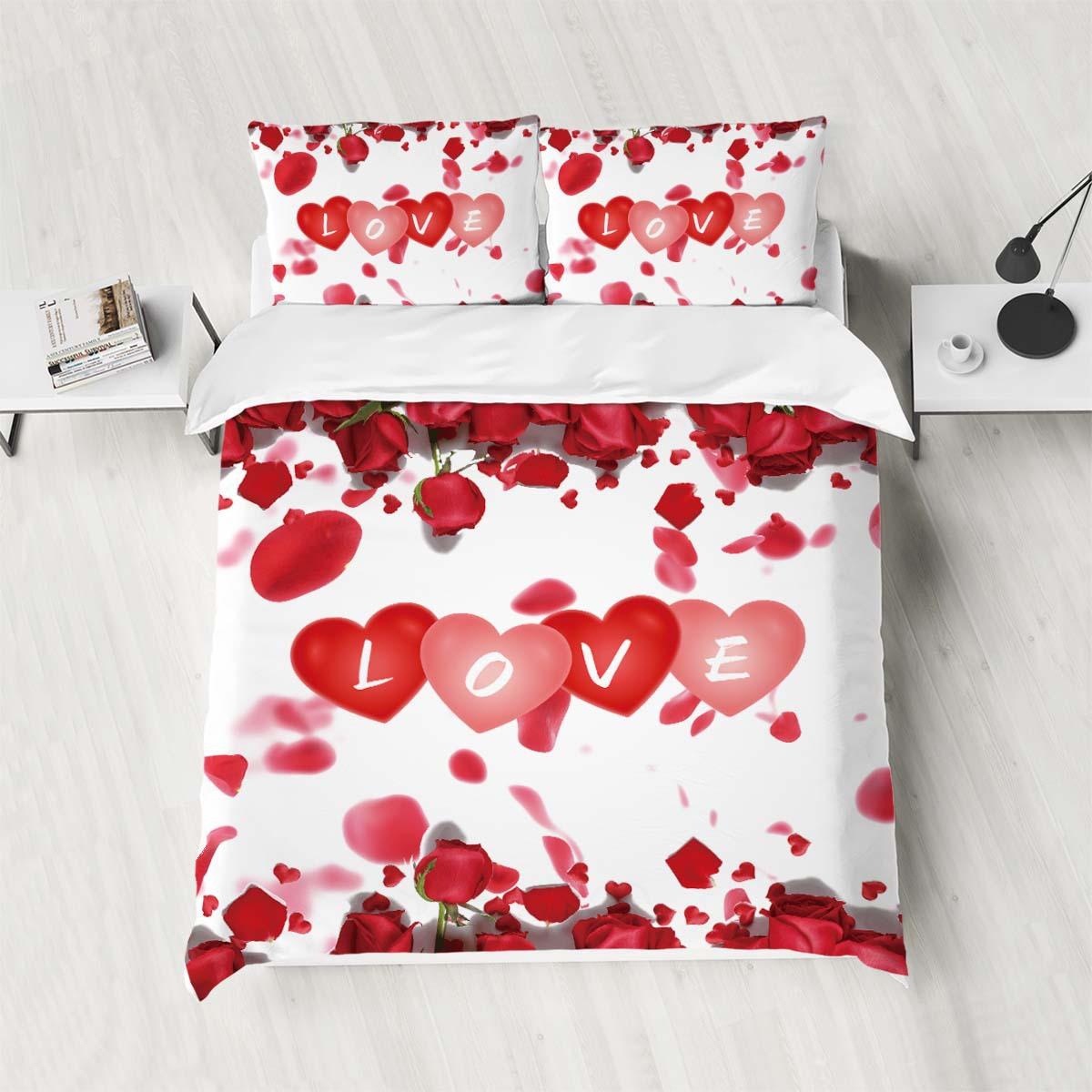 Комплект постельного белья из трех предметов День святого Валентина Роза Пододеяльник Простыня Матрас 135x200cm