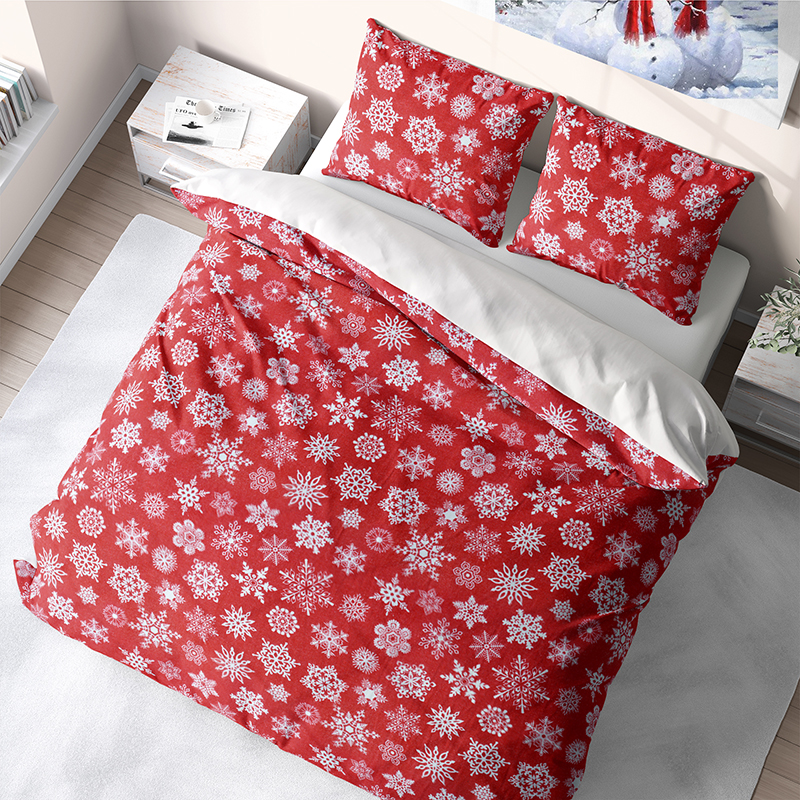 Комплект постельного белья из фланели двуспальный Snowflakes Red-White Красный, Белый TT2504-ab-d