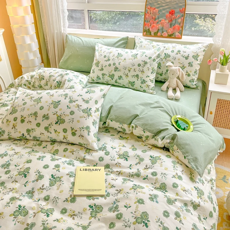 Комплект постельного белья из чесаного хлопка, 3/4 шт., мягкое дышащее пододеяльник с растительным цветком, простыня, наволочка, современное простое постельное белье для спальни