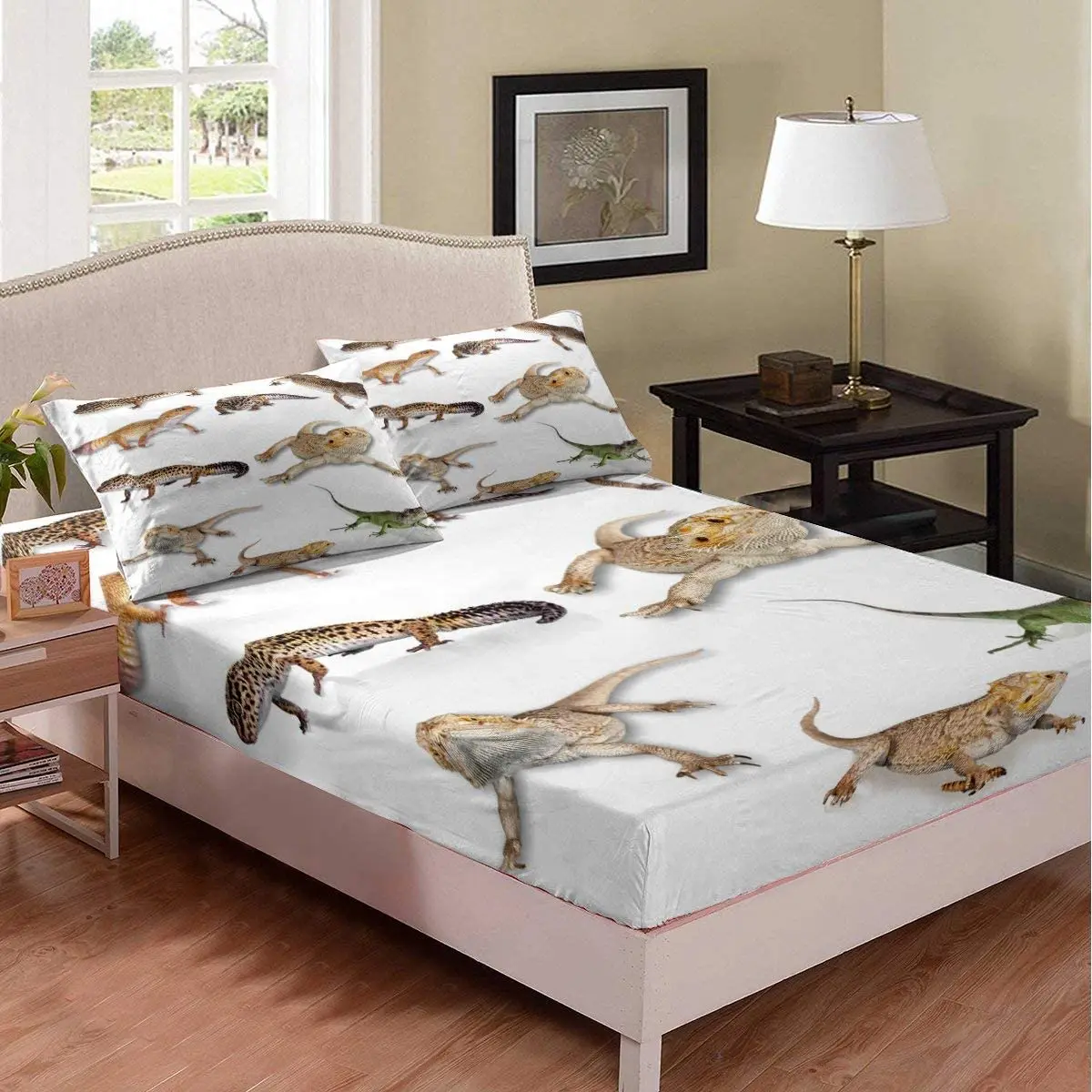 Комплект постельного белья из ящерицы, полный комплект постельного белья для рептилий, King-Size, для мальчиков и девочек, натяжная простыня с и...