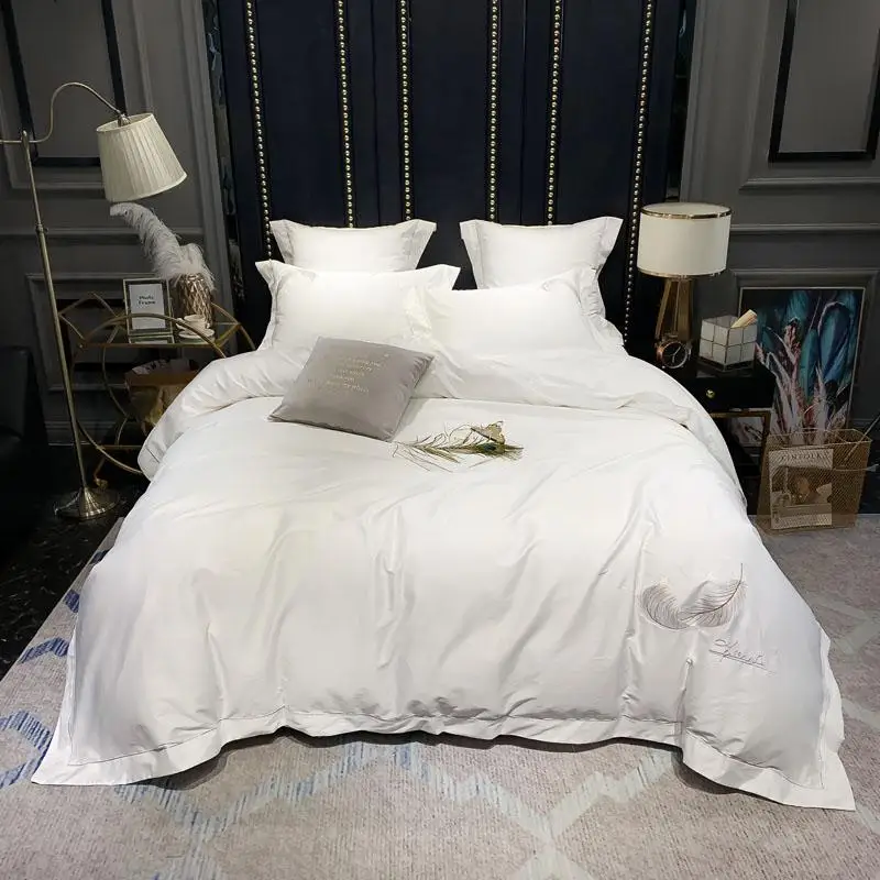 Комплект постельного белья из 100% египетского хлопка с вышивкой птичьими перьями, пододеяльник, роскошное постельное белье белого и серого ...