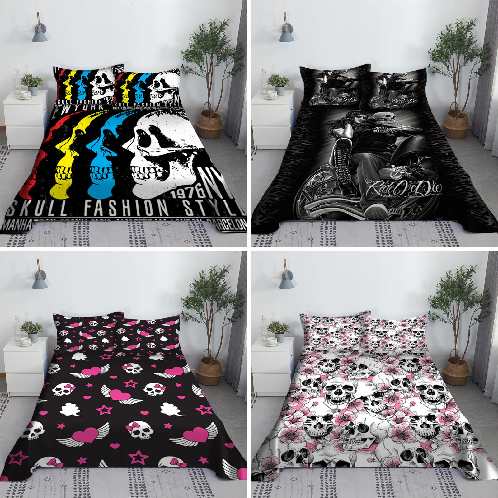 Комплект постельного белья из 2/3 предметов, черное постельное белье с принтом РОЗОВОГО СЕРДЦА, черепа, из полиэстера, с наволочкой, размеры ...