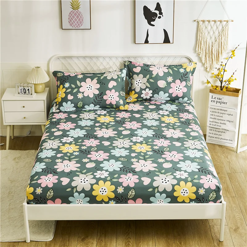 Комплект постельного белья из 3 предметов, наматрасник с наволочкой, мультяшный рисунок, эластичная защита для матраса размера Queen/King