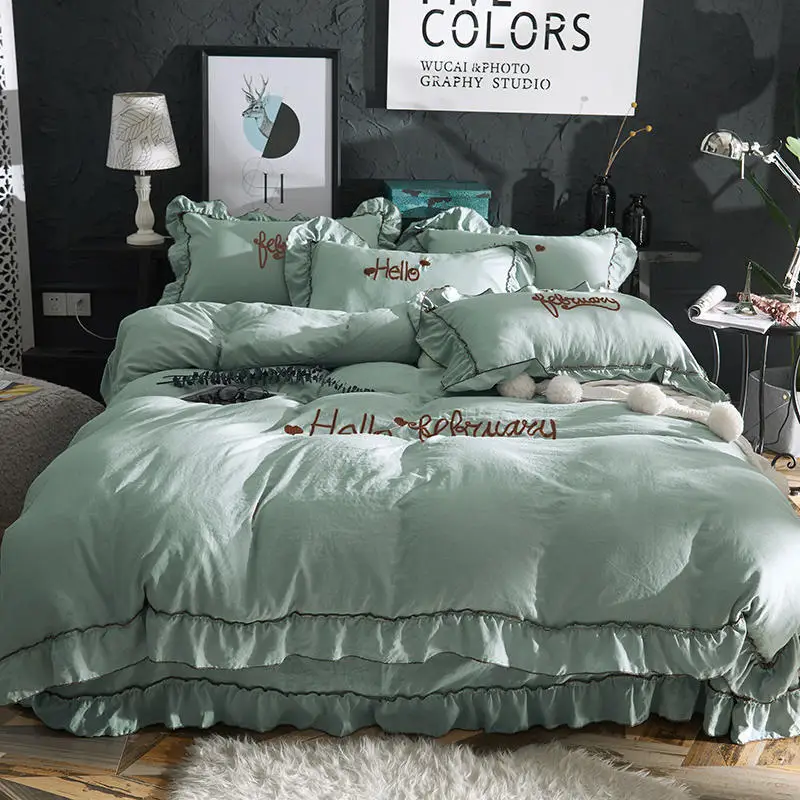 Комплект постельного белья из 4 предметов из промытого хлопка, пододеяльник для девочки, постельное белье с наволочками, одеяло, Комплект по...