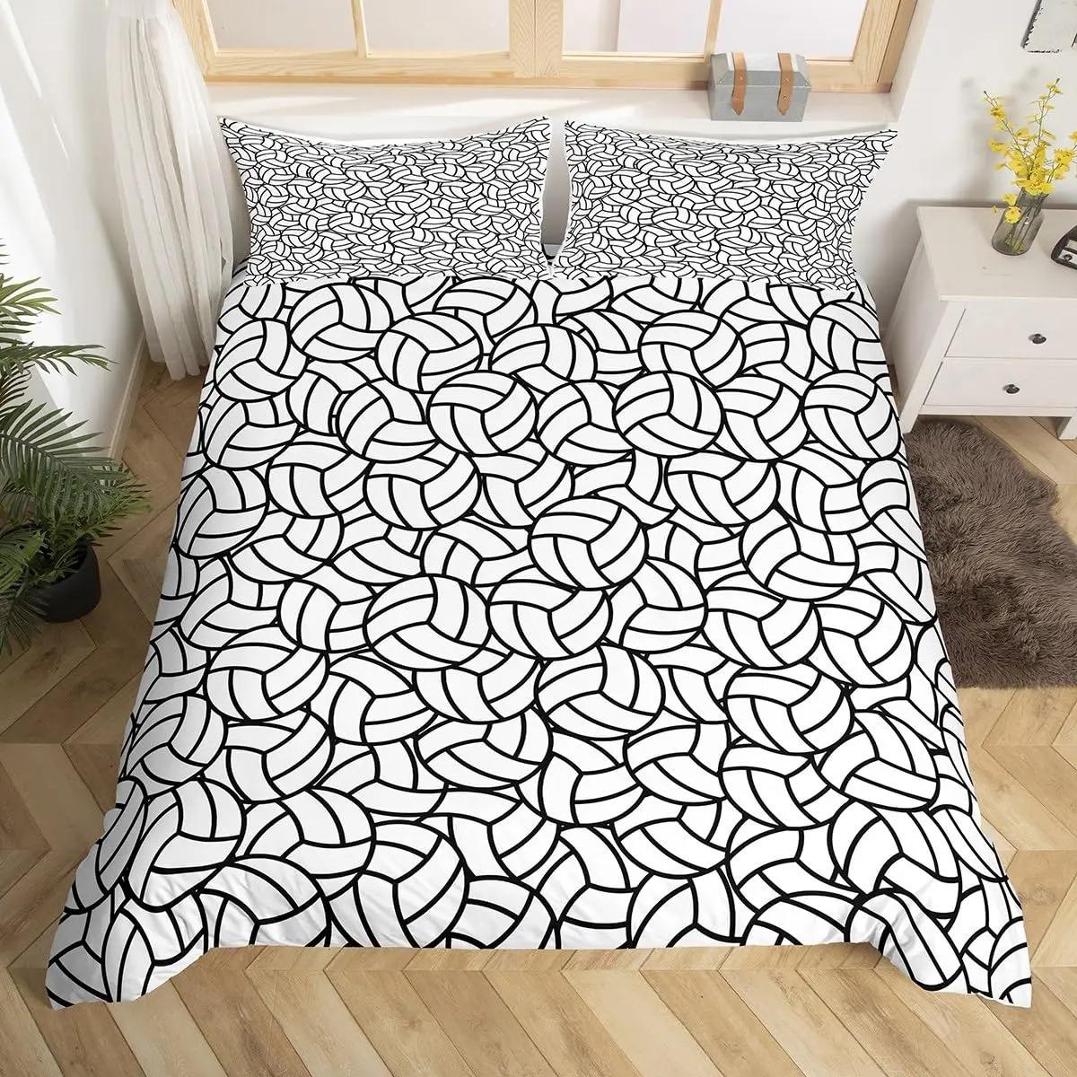 Комплект постельного белья с изображением волейбола, комплект постельного белья с изображением спортивных мячей для мальчиков, декор для спальни подростков, черный пододеяльник с 2 наволочками EU Single 135x200cm