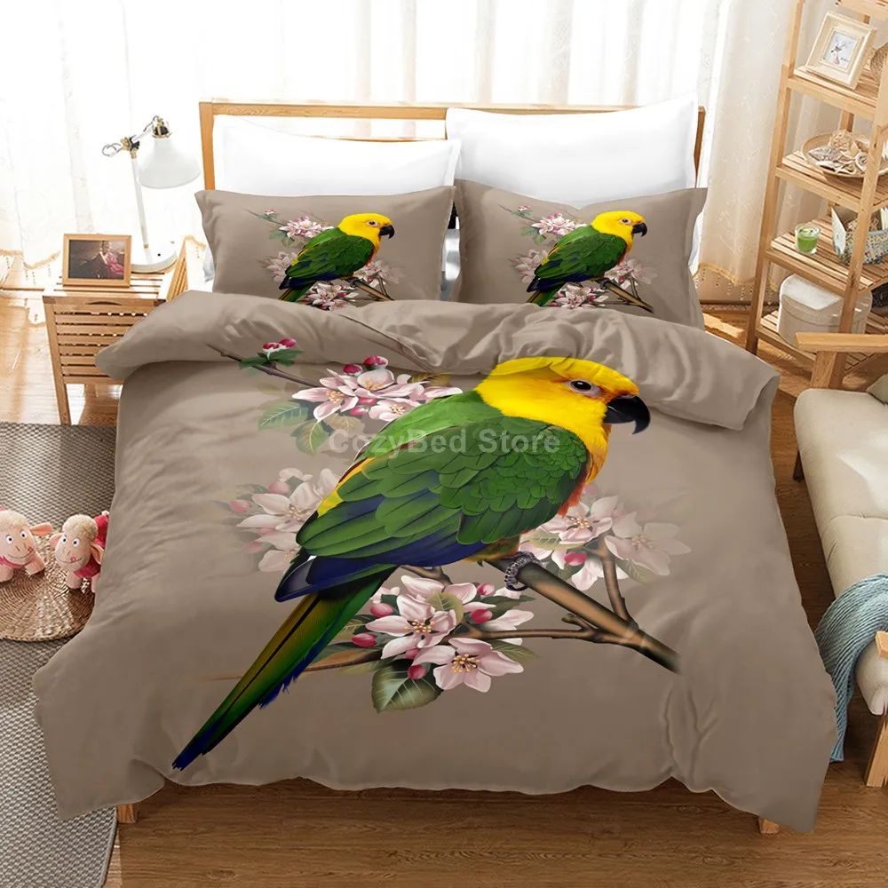 Комплект постельного белья с изображением зеленого попугая, пододеяльник с изображением животных, роскошное покрывало, постельное белье д...
