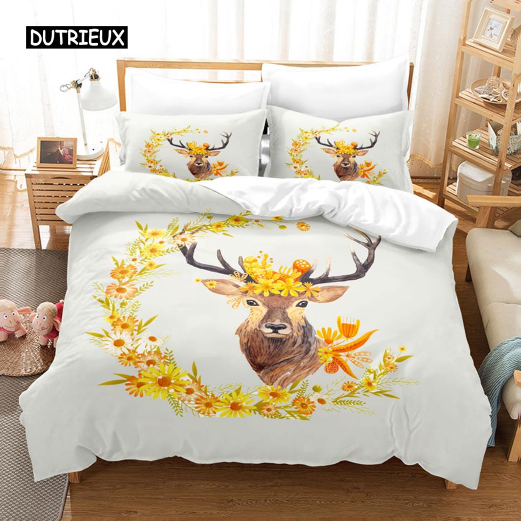 Комплект постельного белья с изображением оленя Комплект постельного белья с изображением оленя для детей, тема оленя для детей-подростков, двуспальное одеяло размера «king-size» из полиэстера EU single(135x200cm)