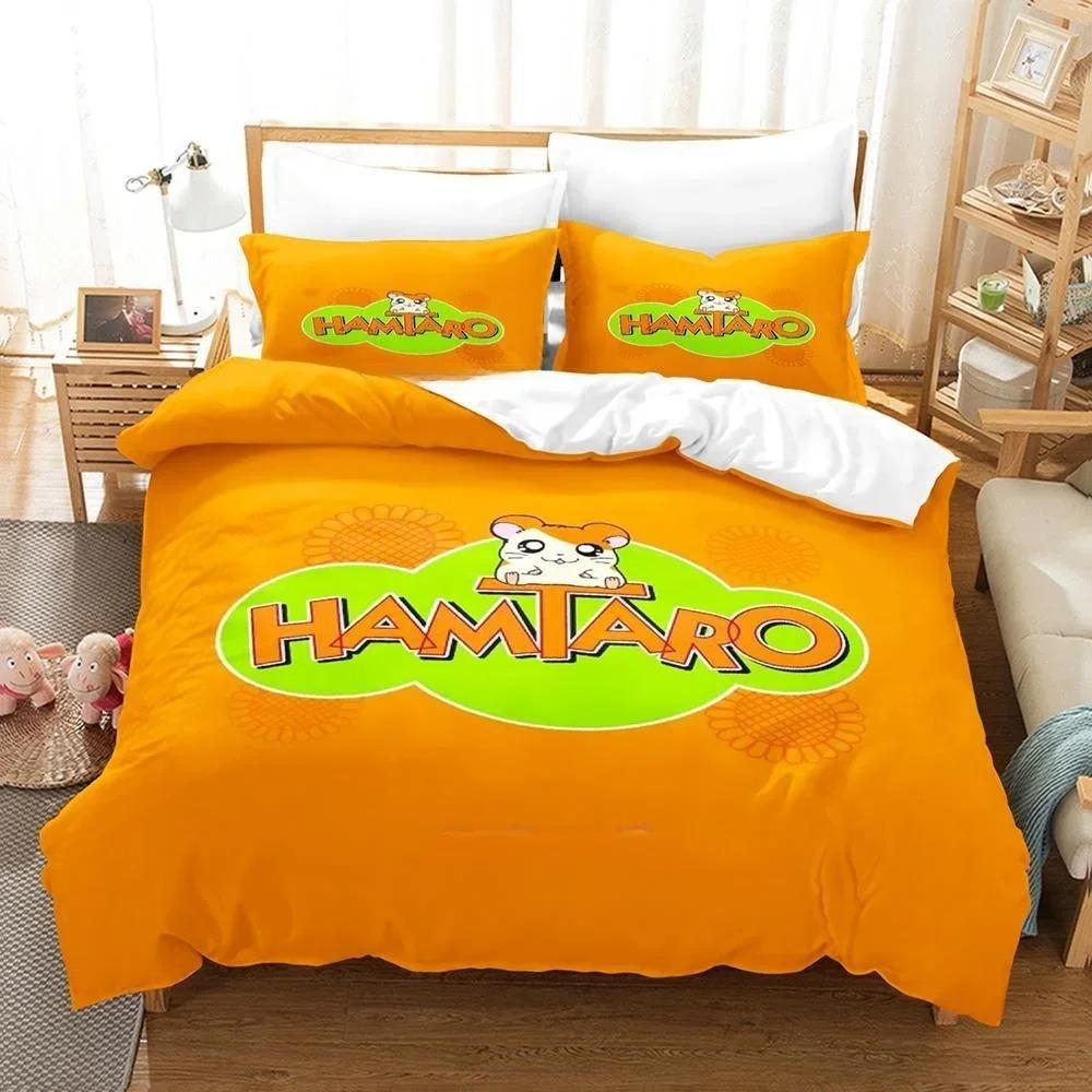 Комплект постельного белья с мультяшным животным Хамтаро, напечатанный на 3D-принтере, Односпальный, Полутораспальный, Двуспальный, Кинг-сайз, Комплект для кровати, Взрослый, Детский, Для спальни, Комплекты пододеяльников 70x133cm 2pcs