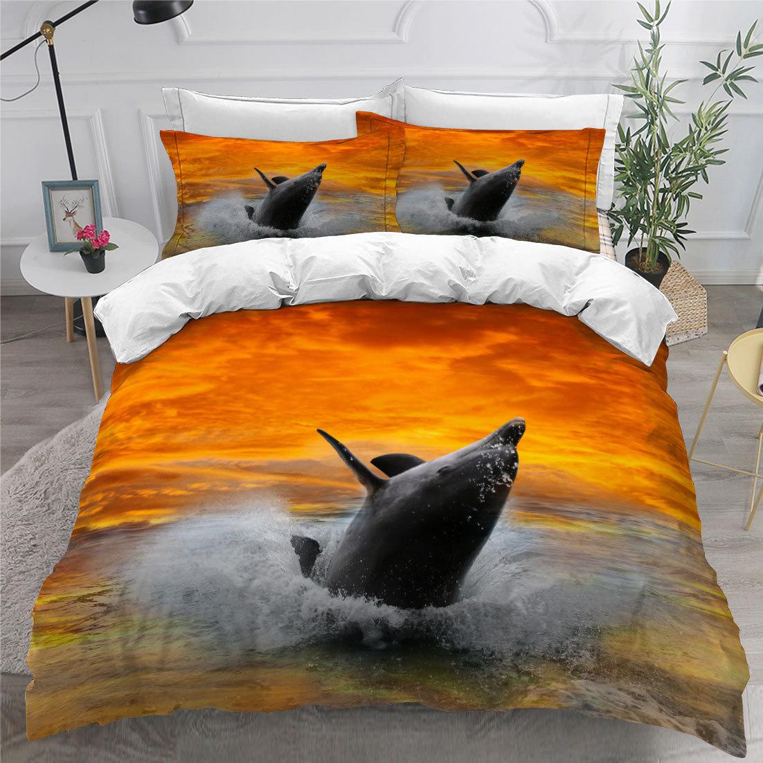 Комплект постельного белья с подводными животными для спальни, детский пододеяльник, наволочка, двуспальная кровать, полноразмерное покрывало, моющаяся молния, удобное украшение для дома Baby 100x135cm