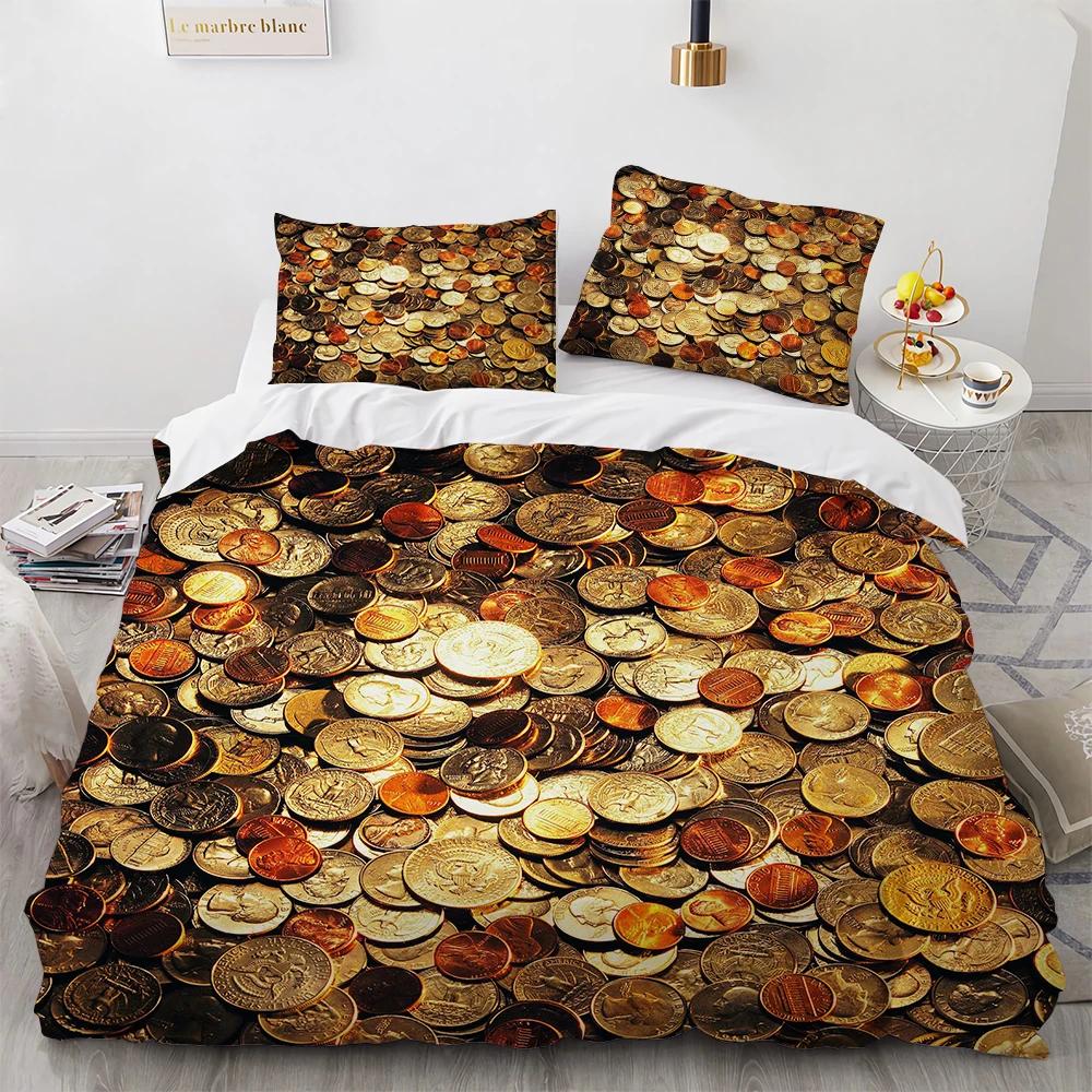 Комплект постельного белья с принтом «Деньги» и «Золотые монеты», мягкий, удобный, двуспальный, размера «king-size», для подростков и взрослых 70x133cm 2pcs