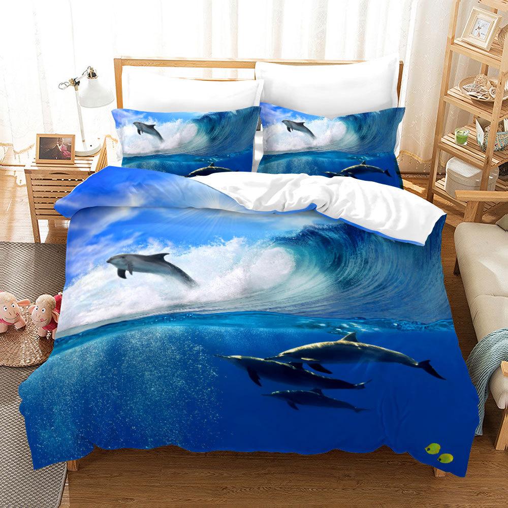 Комплект постельного белья с принтом дельфина и черепахи, пододеяльник из 3 предметов, пододеяльник с изображением морских животных, комплект постельного белья для детей и мальчиков EU single(135x200cm)