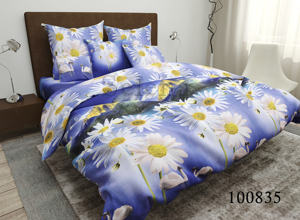 Комплект постельного белья с простыней на резинке Selena Бязь Люкс На лужайке полуторный 100835