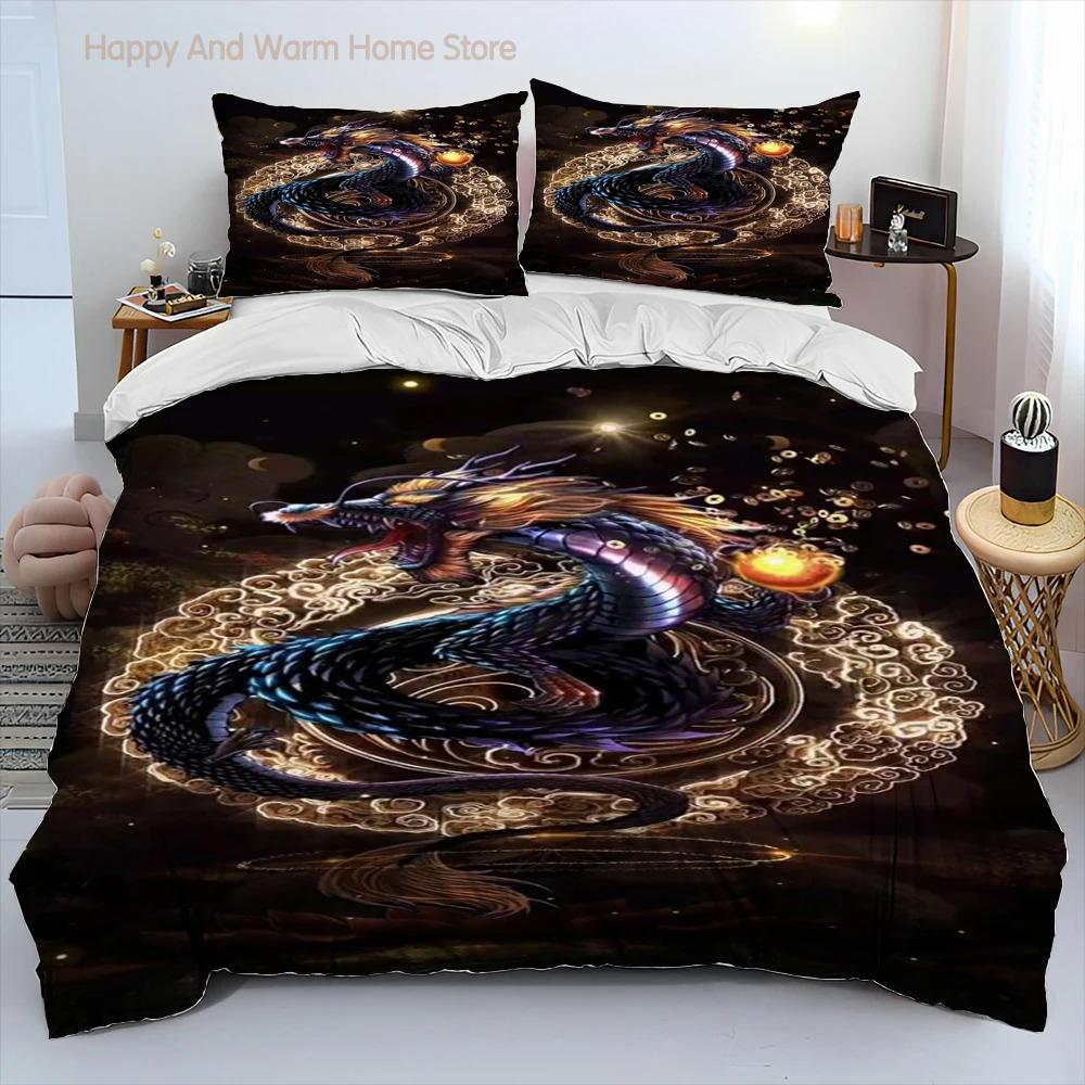 Комплект постельного белья с рисунком дракона, пододеяльник, наволочка, комплект постельного белья размера «king-size» для взрослых мальчиков, подарок EU single(135x200cm)