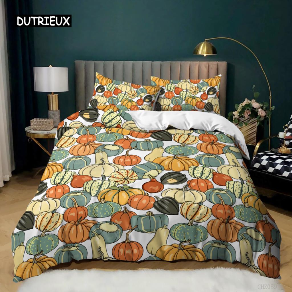 Комплект постельного белья с тыквой Комплект постельного белья с тыквенным принтом на тему праздника Хэллоуина и Дня благодарения Постельное белье из микрофибры Покрывало размера Queen EU single(135x200cm)