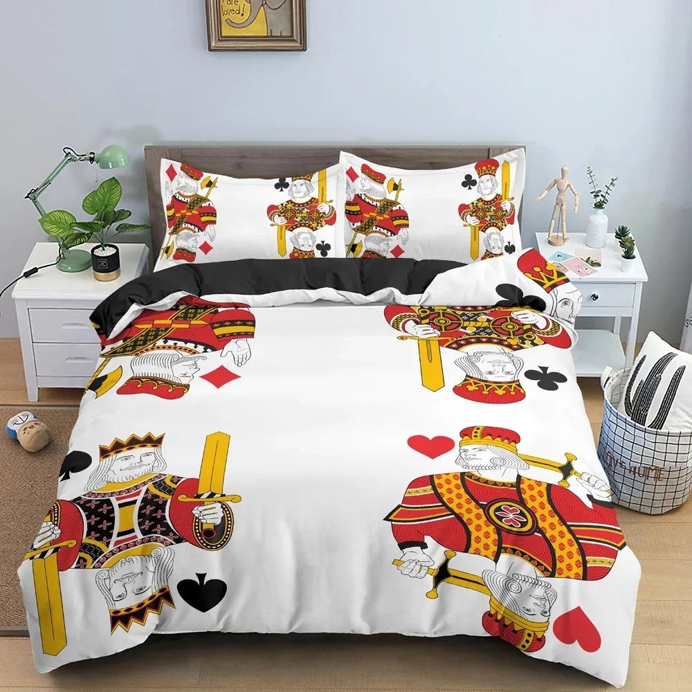 Комплект постельного белья с узором 3D игральных карт, роскошный уютный пододеяльник, комплект постельного белья размера King Queen, полноразмерный пододеяльник, наволочка, постельное белье 70x133cm 2pcs
