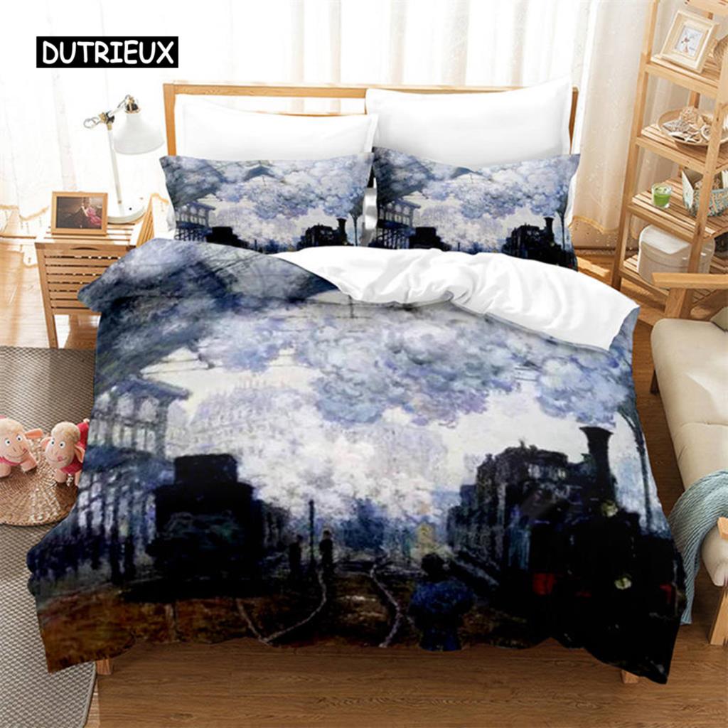 Комплект постельного белья с художественным 3D рисунком в стиле короля Моне и Ван Гога, напечатанный узор на пододеяльнике с наволочками, горячая распродажа, 2/3 шт. EU single(135x200cm)