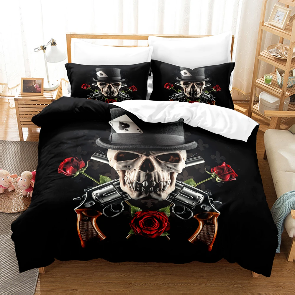 Комплект постельного белья с черепом, украшение для спальни, с одеялом и игральными картами, комплект с покрывалом, домашнее Двухспальное Полноразмерное постельное белье с 3D рисунком