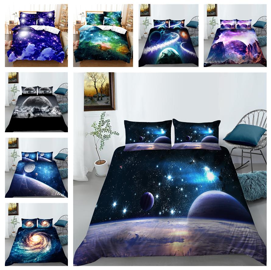 Комплект постельного белья с 3D звездным небом, пододеяльник и наволочка с принтом планеты, 2/3 кусочка ткани из микрофибры, моющиеся и быстросохнущие украшения для дома