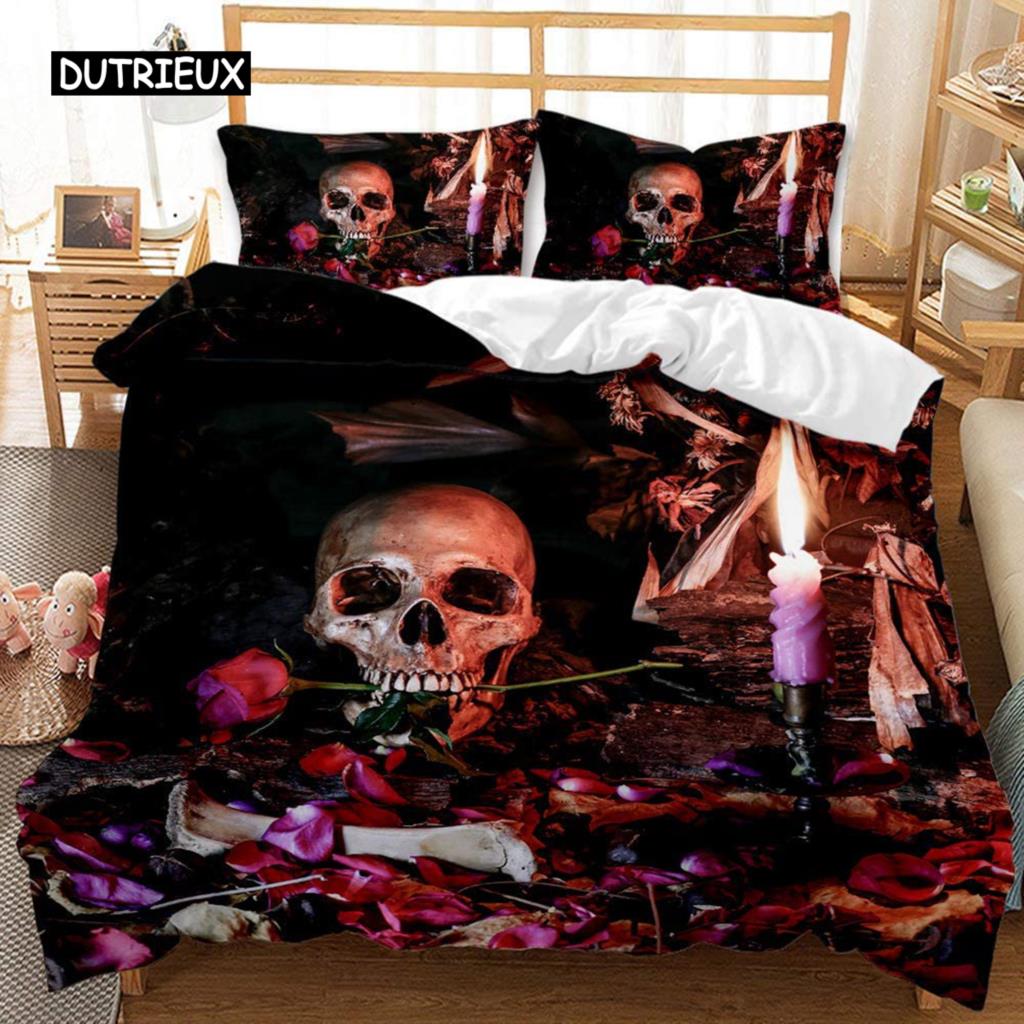 Комплект постельного белья с 3D-принтом «Сахарный череп» для двухспальной кровати, черный комплект постельного белья из микрофибры и полиэстера EU single(135x200cm)