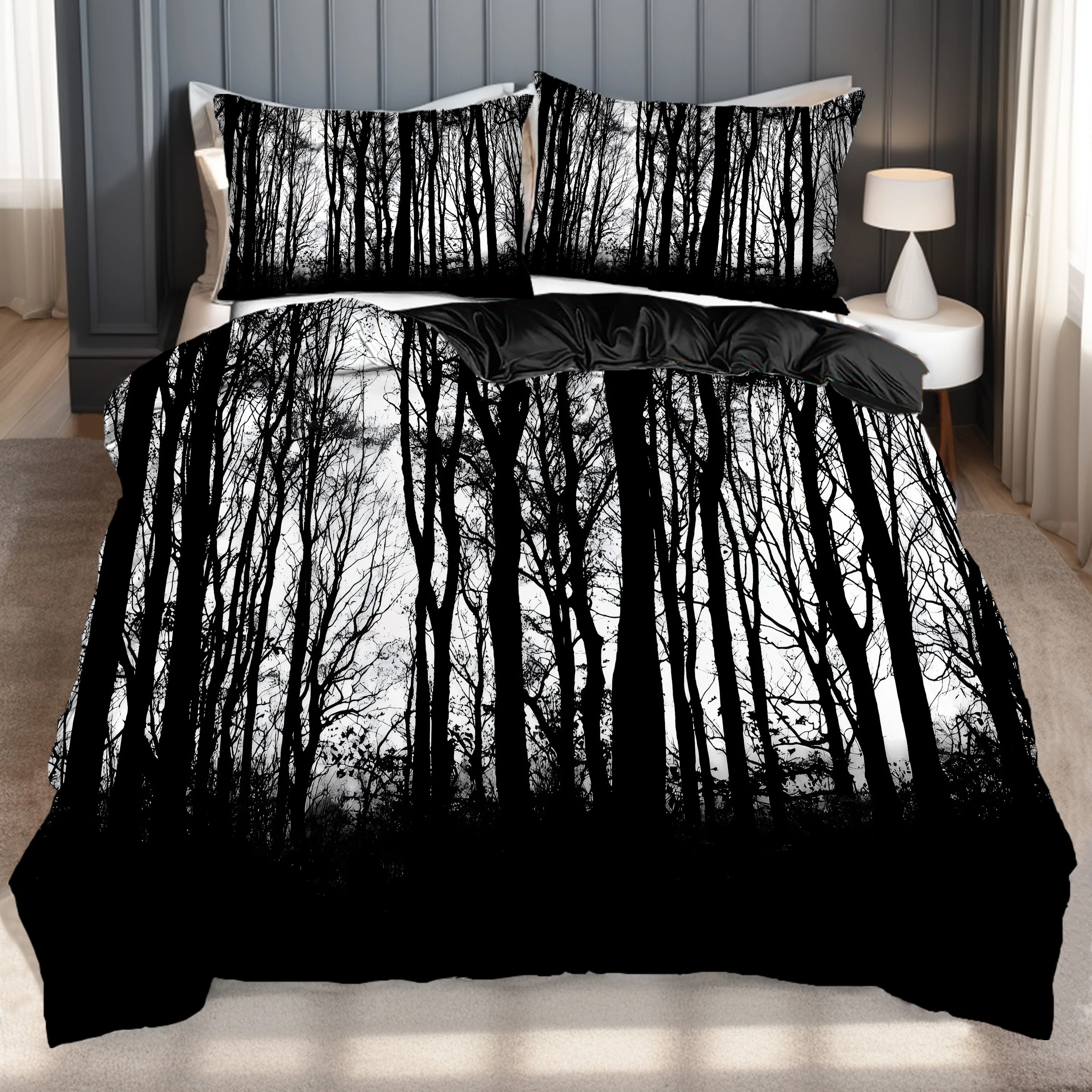 Комплект постельного белья с 3D принтом «Черный лес» для детей, подростков, взрослых, черный стиль, пододеяльник, домашний пододеяльник из полиэстера