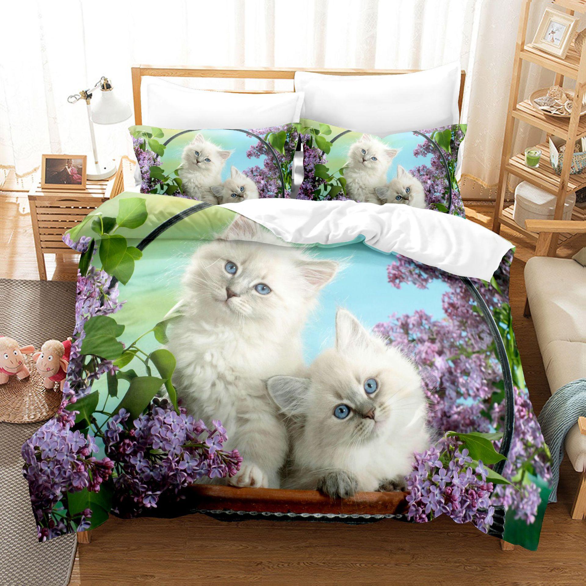Комплект постельного белья с 3D-принтом животных, пододеяльник на пуху кошки или собаки, 2/3 предмета, пододеяльник для детей и взрослых, роскошное мягкое покрывало AU King 210x240cm