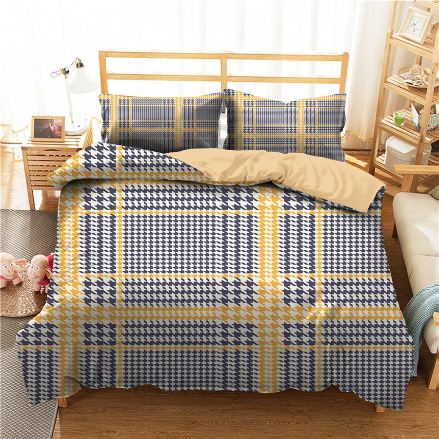 Комплект постельного белья с 3D-принтом, пододеяльник, Комплект постельного белья, геометрический клетчатый домашний текстиль для взрослых,...