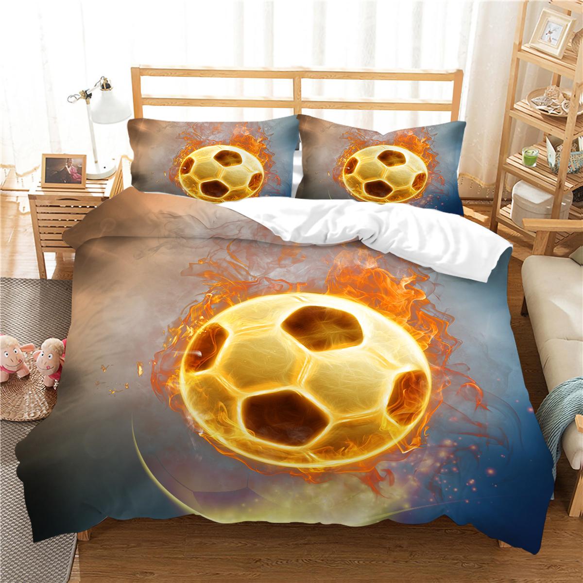 Комплект постельного белья с 3D футбольным дизайном, пододеяльник и наволочки, домашнее постельное белье из полиэстера, Мягкое пододеяльник для мальчиков и детей EU Single 135x200cm
