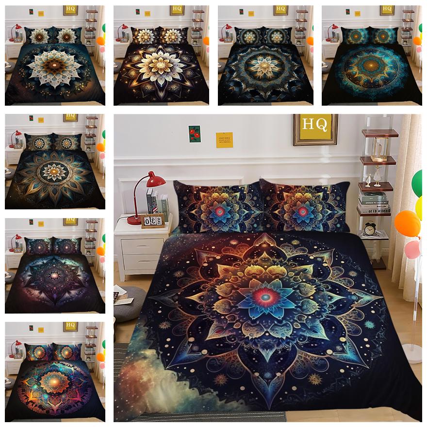 Комплект постельного белья с 3D черным фоном, богемный цветок дурмана, пододеяльник и наволочка, 2/3 шт., ткань из микрофибры, мягкое украшение для дома