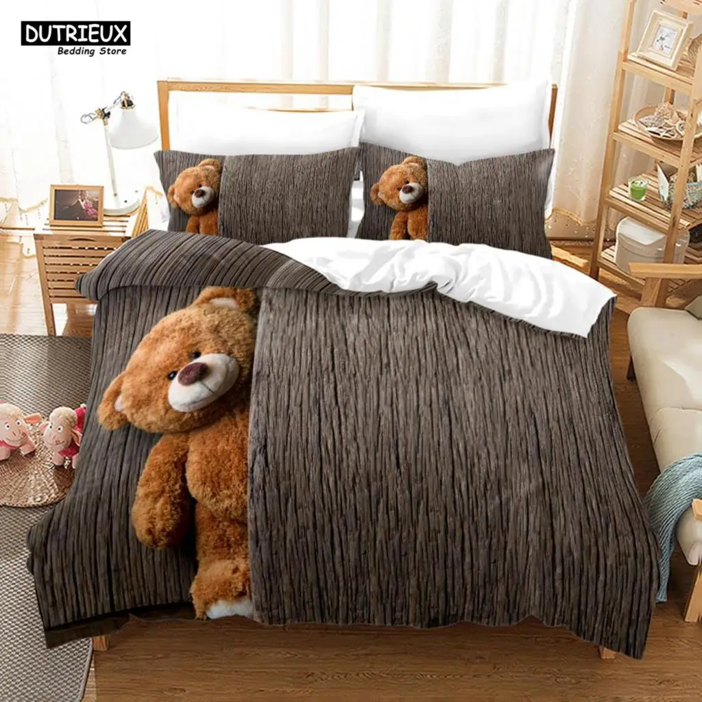 Комплект постельного белья с 3d-мишкой Тедди, белое постельное белье с белым медведем, Подростковая Женская односпальная двуспальная полноразмерная пододеяльник, постельное белье из 2/3 шт.