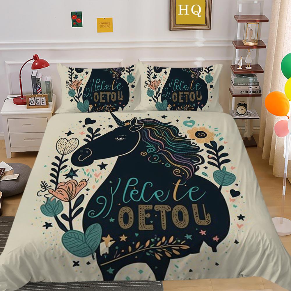 Комплект постельного белья, чехол для милой девушки с 3D принтом единорога, полиэстер, домашнее постельное белье, двойной полноразмерный пододеяльник EU Single 135x200cm