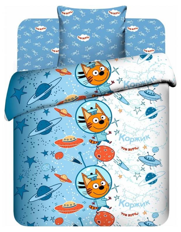 Комплект постельного белья 1,5-спальный «Василек» Три Кота, наволочка 70х70 см, выполнен из высококачественной хлопковой ткани с ярким рисунком. Хлопковая ткань (бязь), используемая при производстве данного комплекта постельного белья - прочная, долговечная и износостойкая. Ткань выдерживает более 70 стирок без потери качества, долго сохраняет яркость окраски. На ткани не образуются катышки.