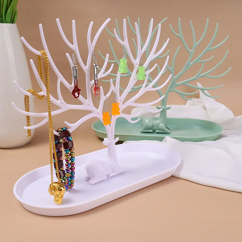 Jewelry Display Stand Tray Tree Storage Racks Earrings Necklaces Rings Jewelry Boxes Case Desktop Organizer Holder Make Up Decor