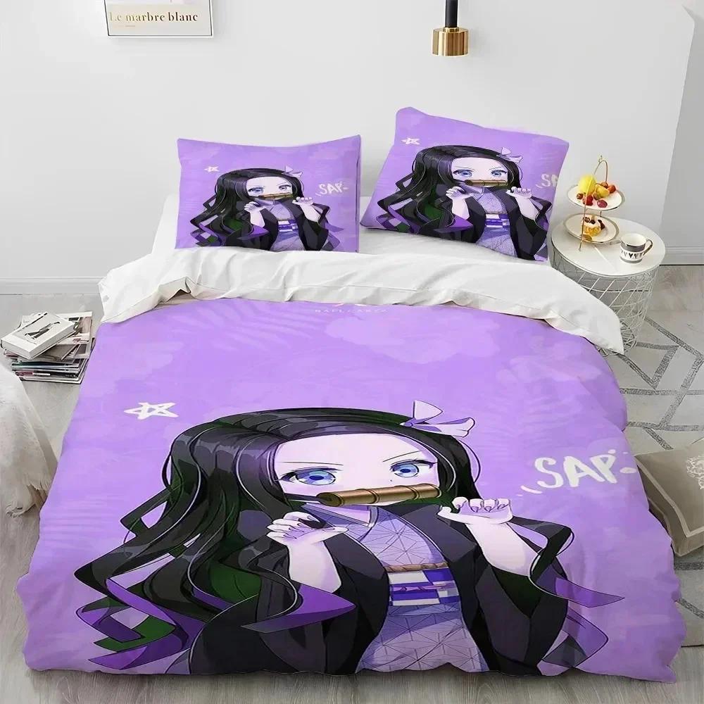Комплект постельного белья Demon Slayer Kamado Nezuko, пододеяльник, наволочка, двуспальная кровать, односпальная кровать, подарок для мальчика или подростка 70x133cm 2pcs