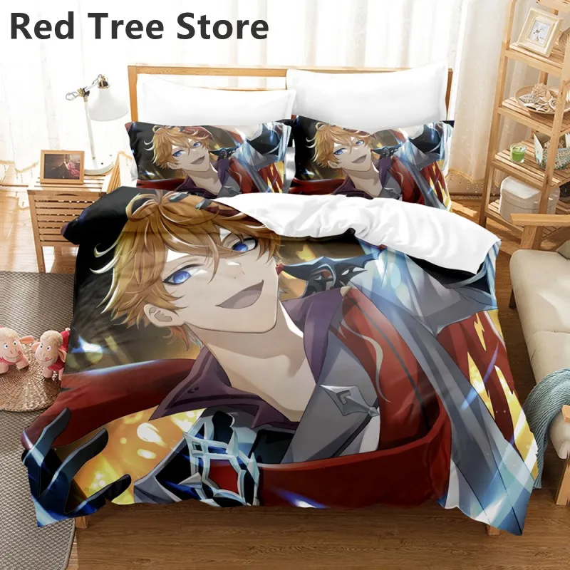 Комплект постельного белья Genshin Impact с героями мультфильмов, детская игра, 3D пододеяльник, одеяло, 2/3 шт., постельное белье для детей, для мальч...