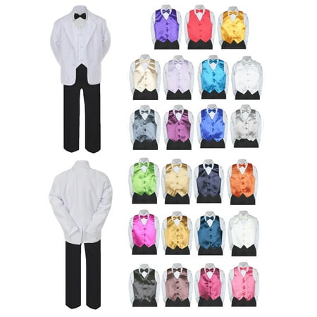 7pc Boy Formal Black & White Suit Tux Set Satin Bow Tie & Vest Baby Sm-20 Teen