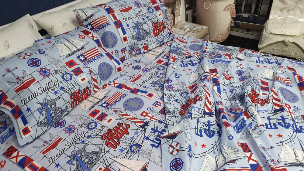 Комплект постельного белья Komfort-tekstil Морской путь, ранфорс (Полуторный на резинке)