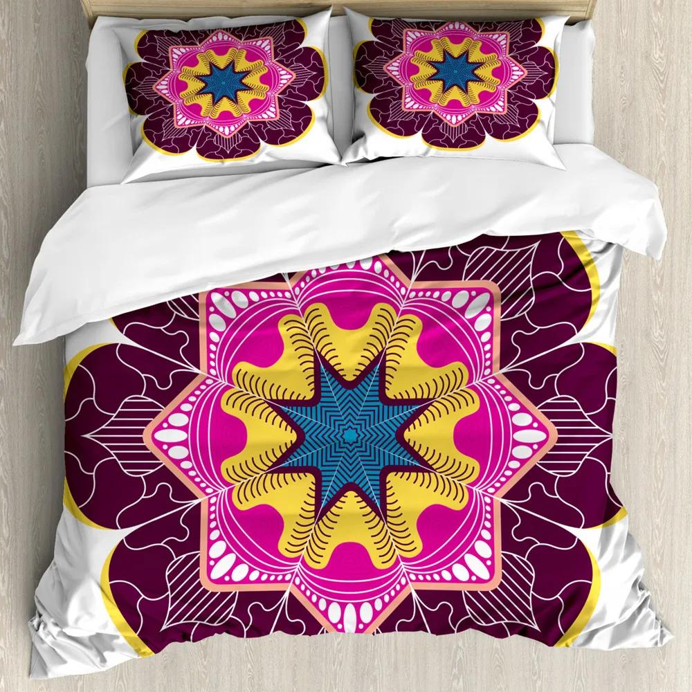 Комплект постельного белья Mandala в стиле бохо, этнический, красочный, весенний, садовый, разноцветный, полиэстер, двуспальный, размера «king-size» EU single(135x200cm)