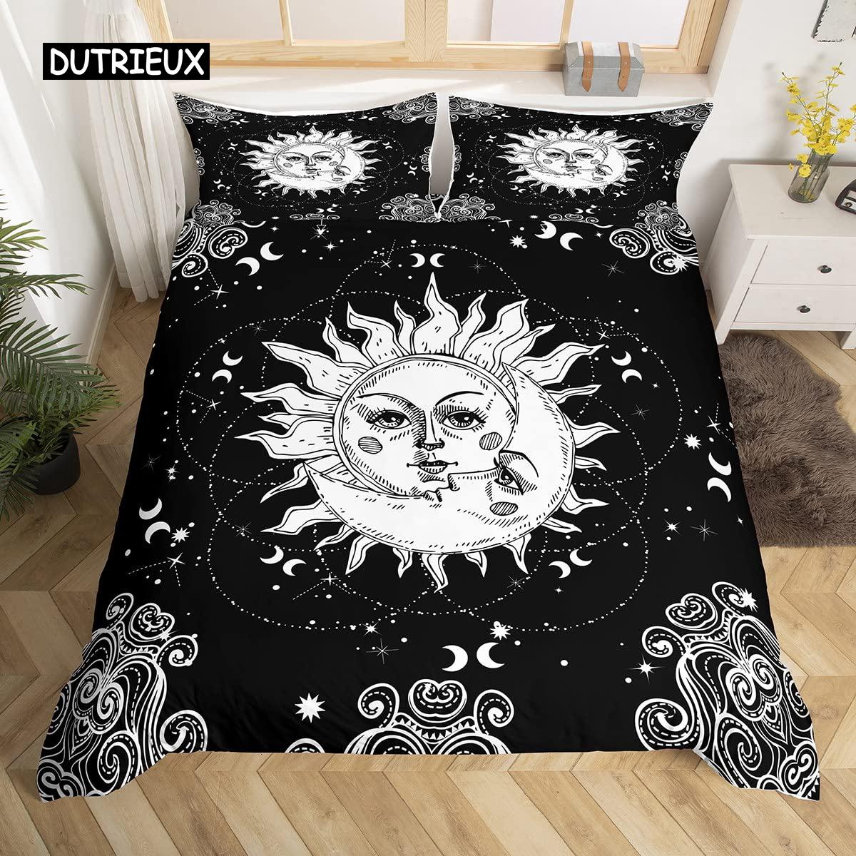 Комплект постельного белья Mandala с завязками на постельном белье Sun and Moon в экзотическом стиле, черно-белый, с ботаническим и цветочным узором, из полиэстера EU single(135x200cm)