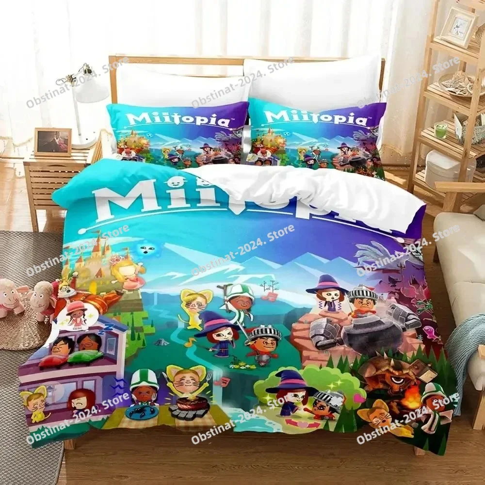 Комплект постельного белья Miitopia с героями мультфильмов, пододеяльник, комплект постельного белья, пододеяльник, наволочка, одеяло, королевский размер, комплект постельного белья для мальчиков и взрослых