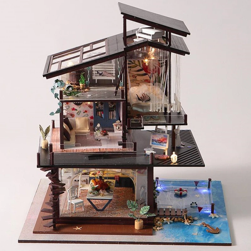 Wooden Miniature Valencia Coast DIY Doll House Kit Building Assembly Model Kit Home Decoration Christmas Birthday Gifts