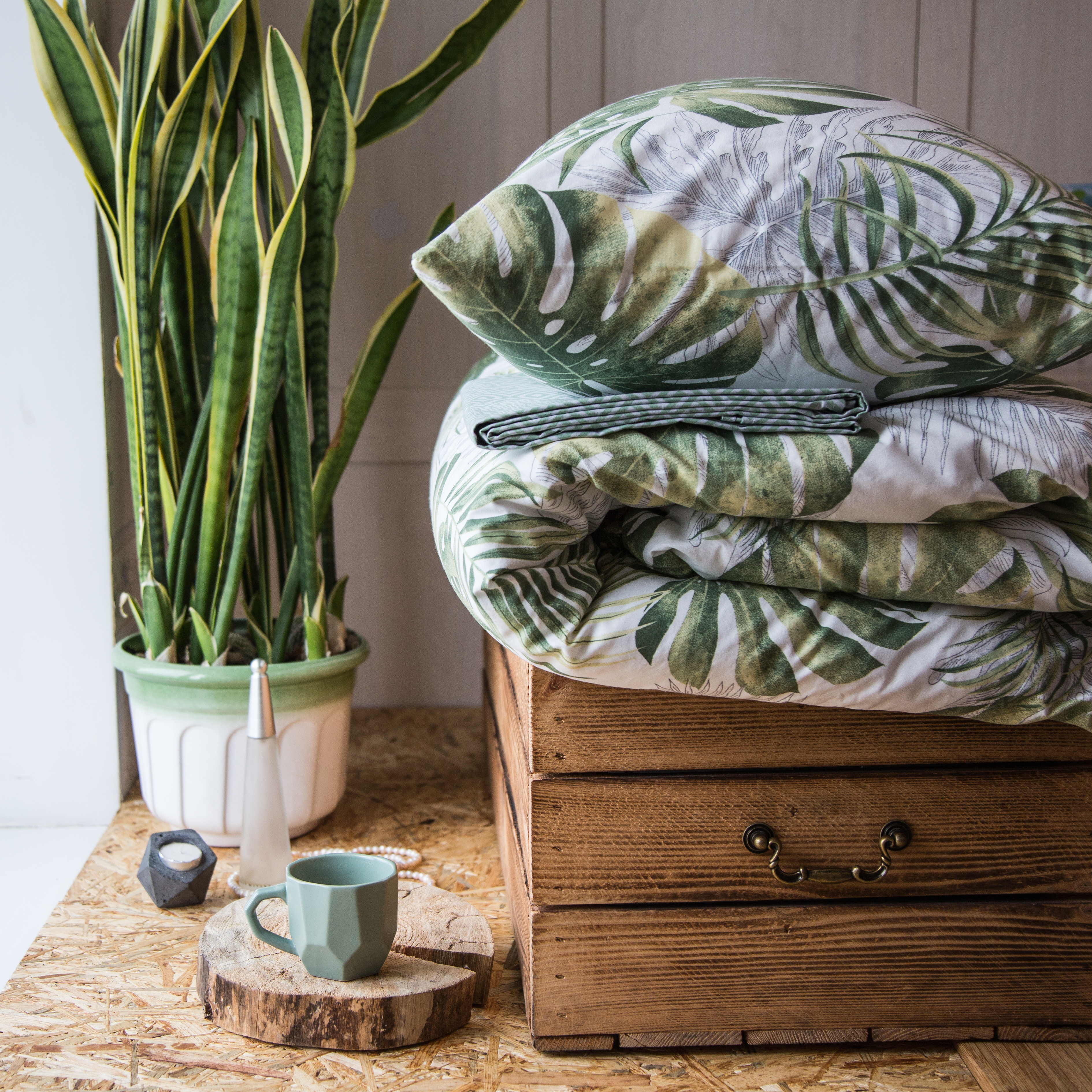 [html]Тропические леса Южной Америки, Бразилия, полуостров Юкатан – там, где не бывает зимы, а всегда тепло. В этих краях растет красивое и вечно зеленое растение Монстера.Увидев эту красавицу, почти каждый цветовод задается целью обязательно достать молодой отросток и вырастить дома такую же. Monstéra - крупная лиана с резными листьями способна украсить интерьер любой комнаты.Цветок Монстеры выглядит интересно и загадочно, и о нем ходит множество различных легенд, примет и суеверий. Считается что это растение служит оберегом и хранителем очага: привлекает в дом удачу и богатство, не пускает плохих людей и способствует долголетию его жителей. А если во сне вы увидите это растение, то стоит ждать изменений в личной жизни: появление нового партнера и романтические отношения.Если вы готовы к переменам в своей жизни - предлагаем вам хлопковый комплект постельного белья с изумительно красивыми листьями монстеры. Зеленые, сочные они оживят ваш интерьер, придадут игривости и уюта вашей спальне. Засыпать и просыпаться в садах Эдема, под щебет райских птиц, что может быть прекрасней - только сладкий и комфортный сон.Сочетание с коллекцией Silver – придаст спокойствия и утонченности вашей спальни. Коллекция постельного Emerald и коллекция Monstéra добавят сочных красок и роскоши в ваш интерьер.[/html]
