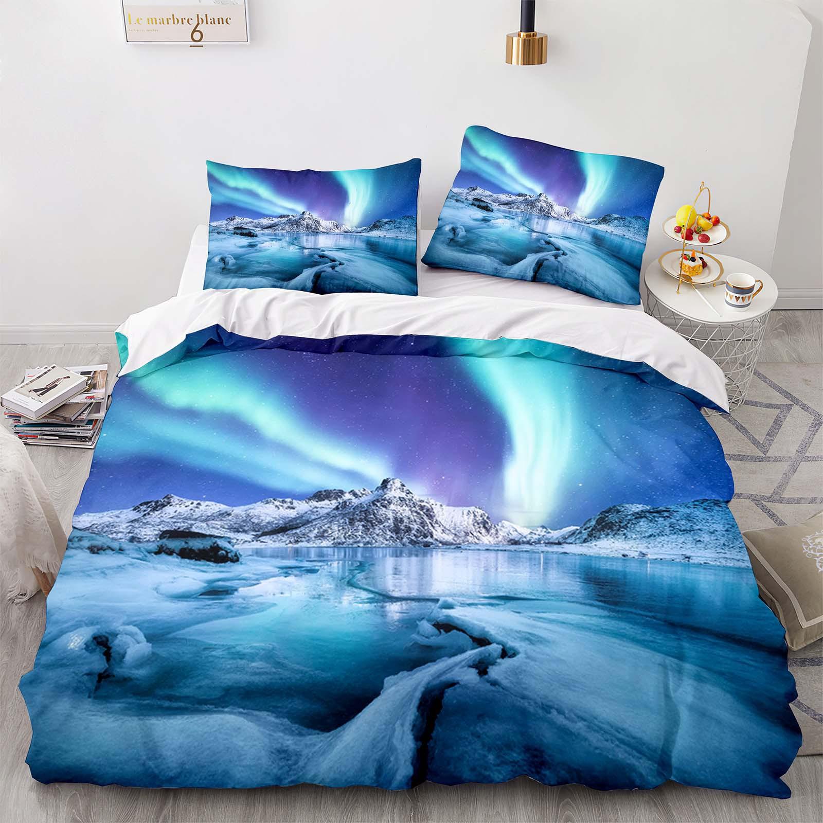 Комплект постельного белья Mountain Aurora Romantic Galaxy Landscape односпальное двуспальное двуспальное двуспальное односпальное покрывало полный размер женское постельное белье EU single(135x200cm)