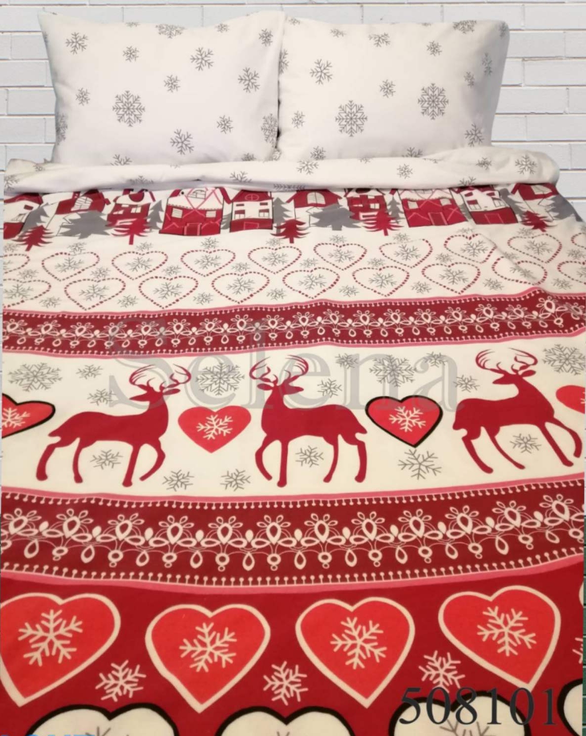Комплект постельного белья Selena Рождественский олень Фланель двуспальный 508101