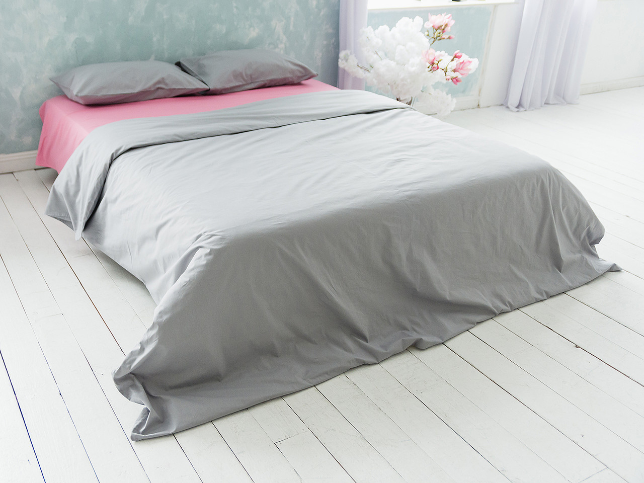 Комплект постельного белья Utorova Лос-Анджелес Двуспальный 2 наволочки хлопок ранфорс Серый+Розовый