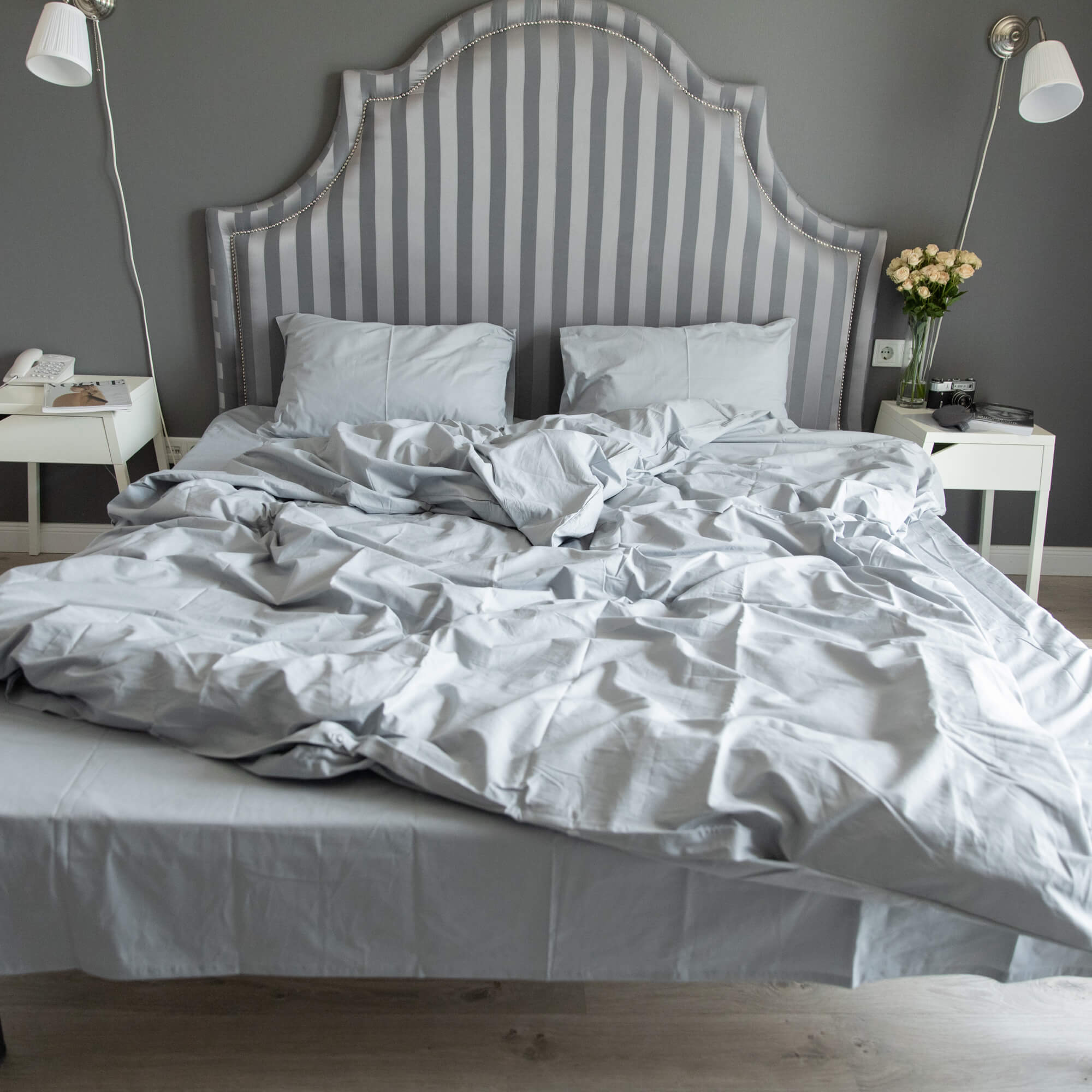 Комплект постельного белья YoHome Ранфорс Двуспальный 180р с резинкой Светло-серый 180х215 (SB147-2_1.8р)