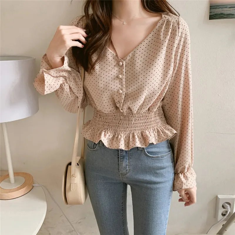 HziriP Chic Sweet Polka Dots Women Casual Office Ladies V-Neck Waist-Controlled Gentle Plus Size Fashion Loose All-Match Shirts